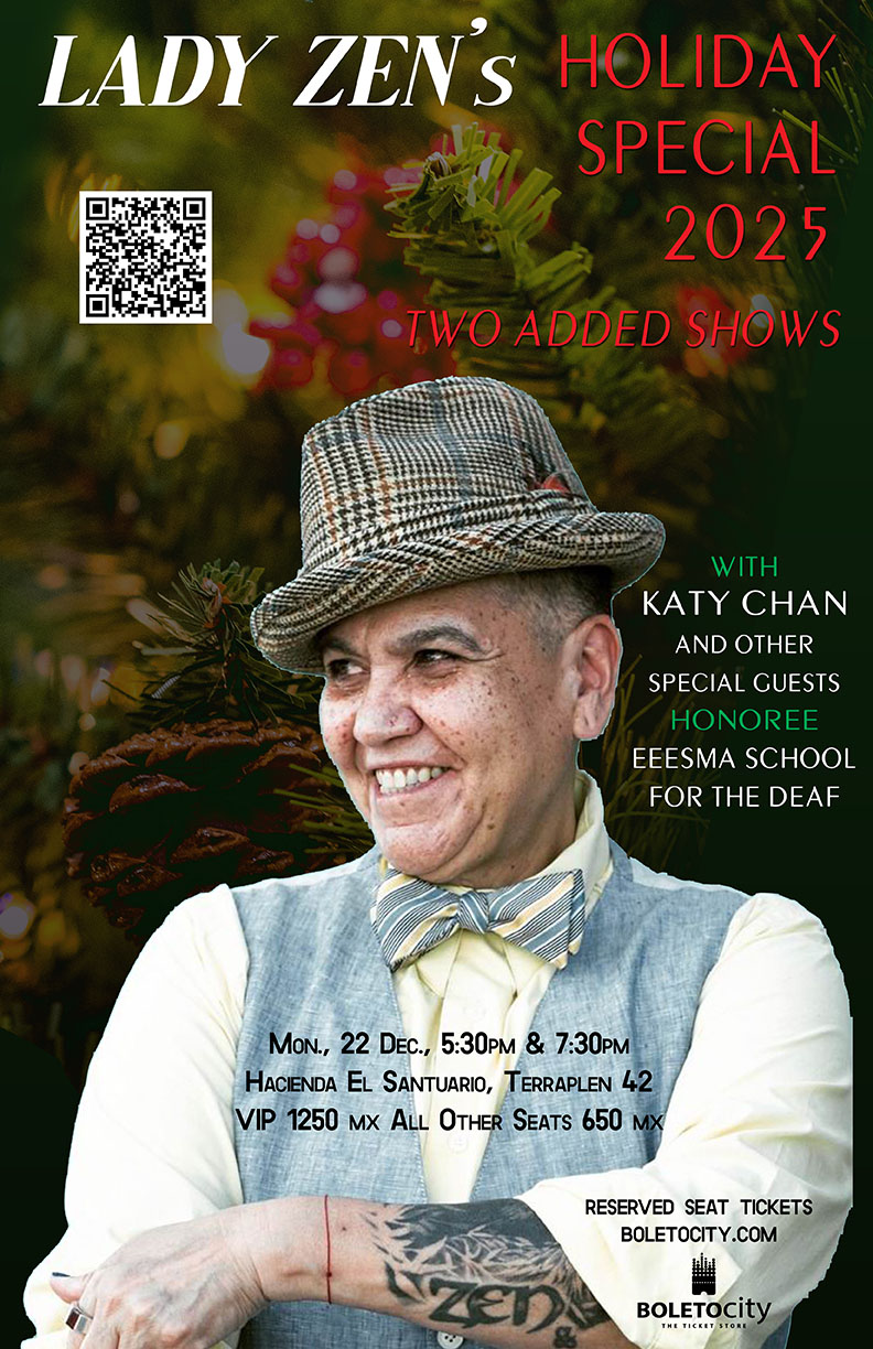 Zen’s final San Miguel concert in 2025, before returning to New York, is the singer’s immensely popular Holiday Special, which will be held at Hacienda El Santuario, a luxury boutique hotel in Centro, at Terraplen 42. There will be shows at 5:30pm and 7:30pm on Monday, December 22, and Tuesday, December 23. The Tuesday shows are sold out.